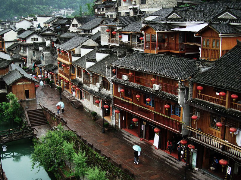 Phượng Hoàng Cổ Trấn : Du thuyền Sông Đà Giang, Thành lầu Đông Môn, Tháp Vạn Dân, Tường thành cổ.
